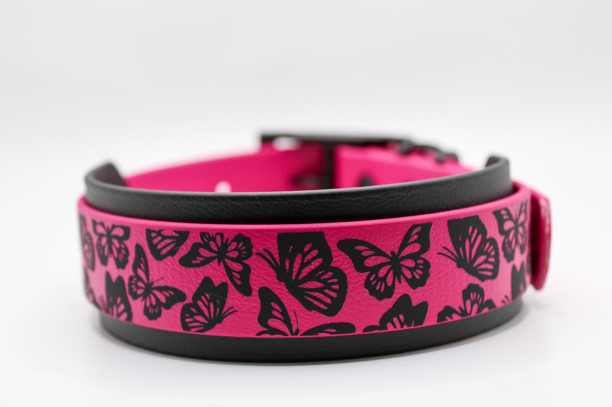 The butterfly accent adds personality while maintaining the strength and reliability of layered Biothane construction.